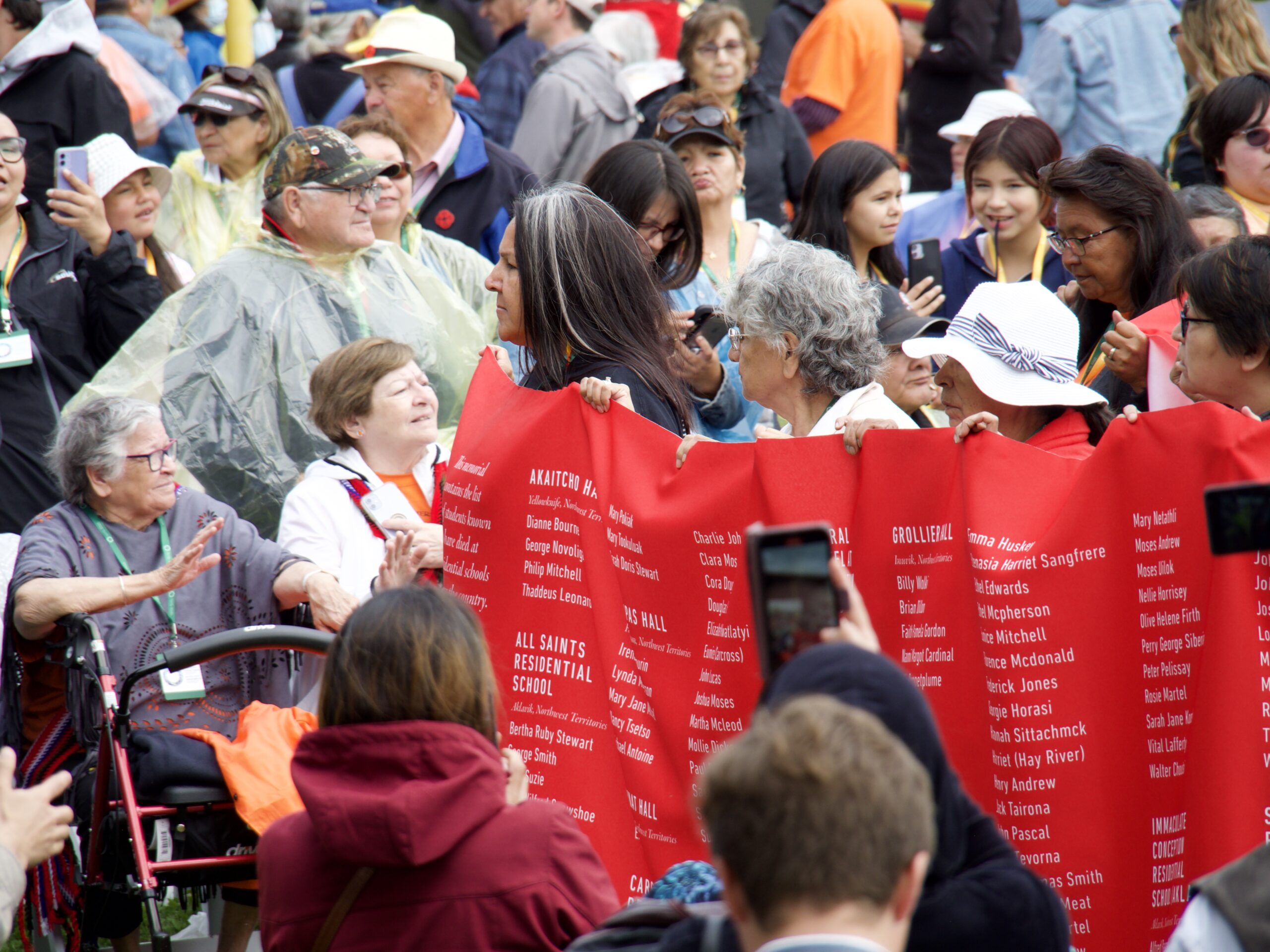“Today I am here, in this land that, along with its ancient memories, preserves the scars of still open wounds. I am here because the first step of my penitential pilgrimage among you is that of again asking forgiveness, of telling you once more that I am deeply sorry. Sorry for the ways in which, regrettably, many Christians supported the colonizing mentality of the powers that oppressed the indigenous peoples. I am sorry. I ask forgiveness, in particular, for the ways in which many members of the Church and of religious communities cooperated, not least through their indifference, in projects of cultural destruction and forced assimilation promoted by the governments of that time, which culminated in the system of residential schools.” Pope Francis in Maskwacis July 25, 2022