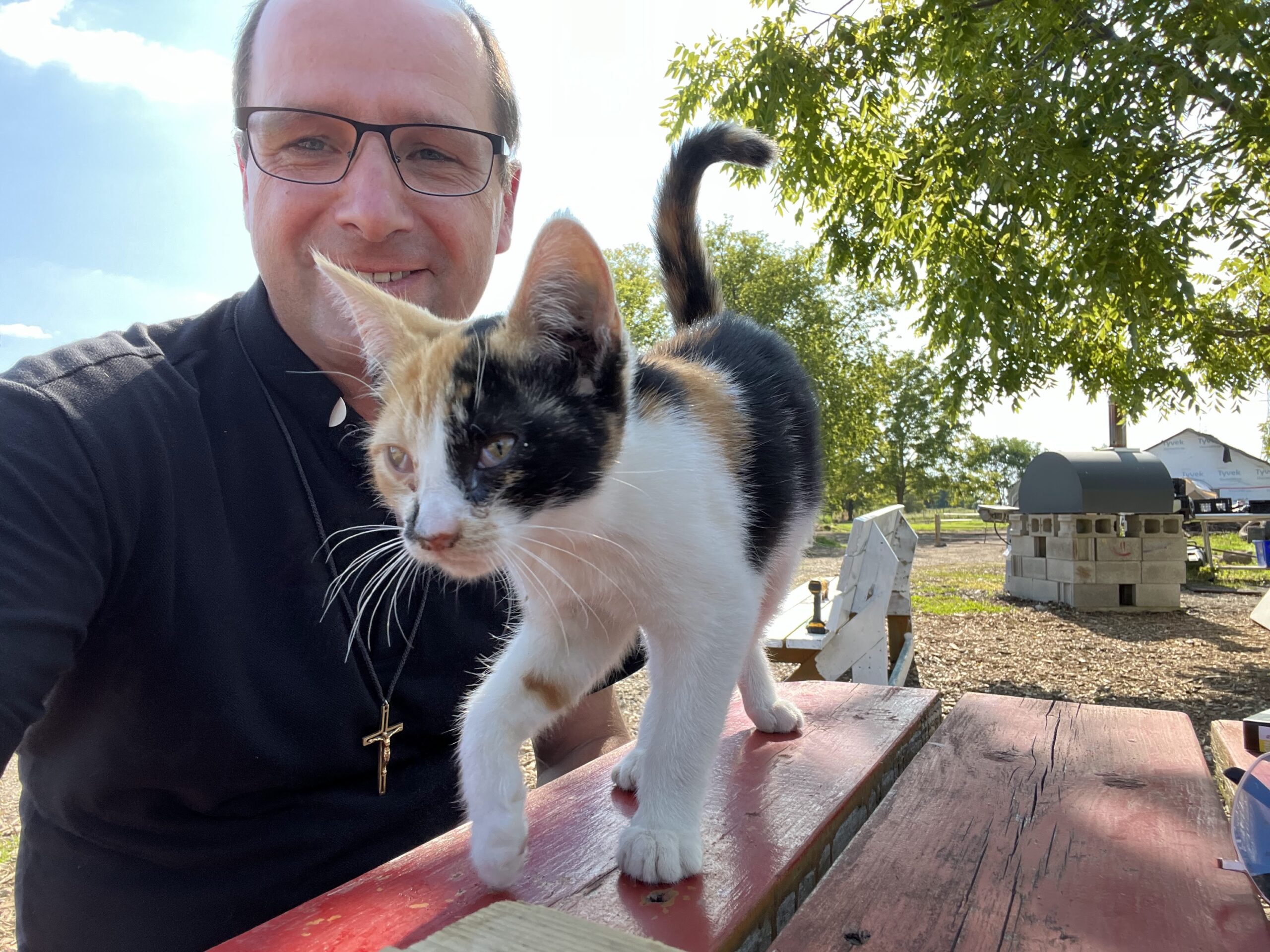 It was a beautiful, late summer day, as I sat on the park bench at the De Mazenod Farm enjoying some time of tranquility with the company of one of our kittens. I love spending time there, enjoying nature and God’s creation. This particular day, we were also waiting for a special delivery.