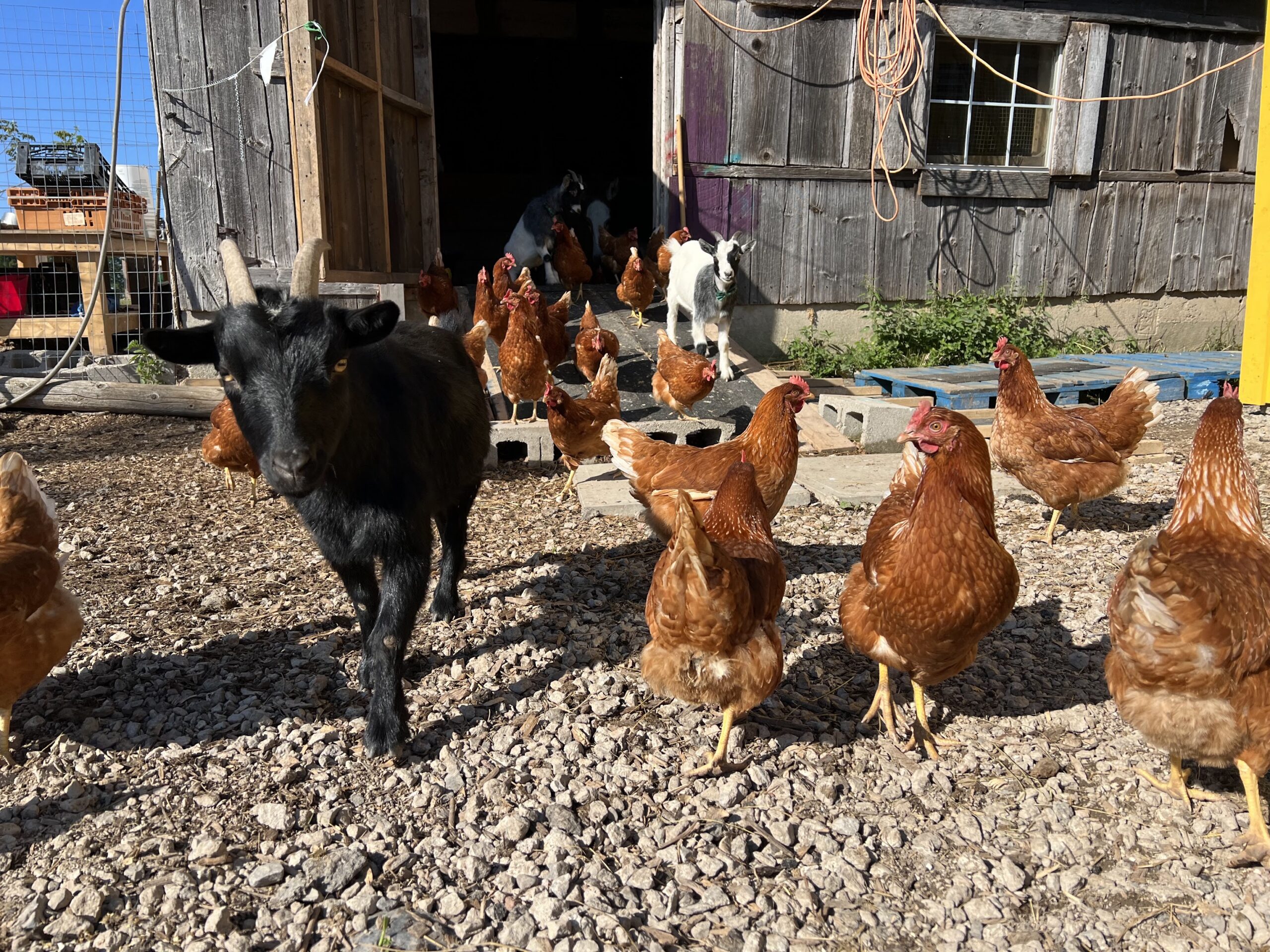 As I was enjoying the day at the Farm, the trailer finally arrived! And just like from Noah’s Ark they begun to come out in pairs: goats, rams, ponies and donkeys. Our dream finally came true! The animals filled the yard with joyful sounds, cohabitating in a peaceful environment. It was a new beginning at the De Mazenod Farm!